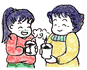 (1人分の材料) 板チョコ1枚、砂糖スプーン1杯、牛乳カップ7分目、材料全部をホーローの鍋に入れて火にかけます。チョコレートが溶けにくいときは、泡だて器で回しながら弱火で温めるとうまくいきます。 栄養たっぷりで、おなかの底から暖まります。