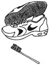 歯ブラシで回りのドロをなるべく落としてから水につけます。クレンザーと洗剤を混ぜたものを歯ブラシにつけて、内側も外側もていねいにゴシゴシ洗います。その際、歯ブラシは先端部ほど短くなるように、ハサミで斜めに切り落としておきます。